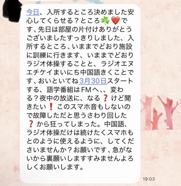 母に施設のことで電話したんです。