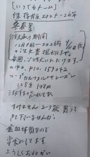 「コープの注文をしないとあかんけどどうしたらいい・・」